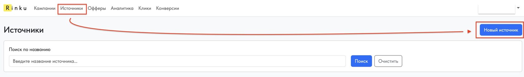 Перейдите на вкладку «Источники» и нажмите кнопку «Новый источник».